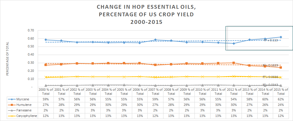Given this primer, we can look at ask a question: have hops laden with myrcene surged in demand, thanks to the citrus-forward IPA craze in the United States?
