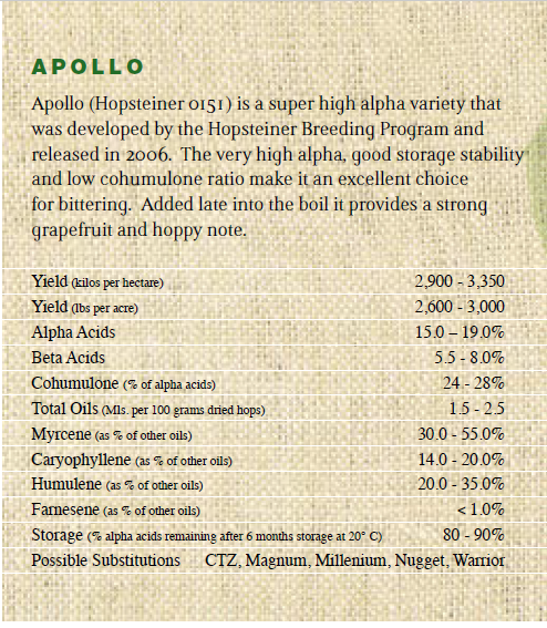 this down into volume of hop oil, but our assumption is that all hop oils have roughly the same density, so we kept the measurement at weight instead of volume. We then used this “oil quantity” as a baseline for how much of each type of essential oil we’re working with. Because the USDA sets guidelines on how much of an essential oil a particular hop should have, we can use this data as a standard set of rules for our gathering of historical statistics on the yield of essential oils per year during every hop harvest. An example (left) of the 2013 USAHops guide illustrates these stats.